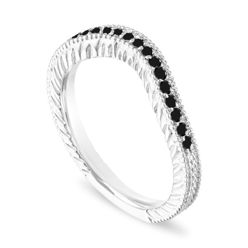 Filigree Black Diamond Wedding Band Curve Matching Wedding Ring Vintage Unique 14k White Gold Or Rose Gold 0 20 Carat